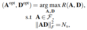 Here, set F consists all possible analog beamformers (size of Nt X NRFt matrices) with constant-magnitude entries.