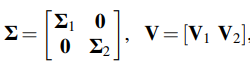 Now for hybrid architecture we will find singular value decomposition (SVD) of channel matrix to find the stronger eigen values and we will only allocate power accordingly to these paths to achieve low overhead in hybrid architecture (Appendix B). For example we will further divide the eigen value matrix (Σ) into two parts (Eqn 6.5) where Σ1 is a Ns X Ns matrix; where Ns indicates rank of matrix or how many simultaneous data streams are available between BS and MS