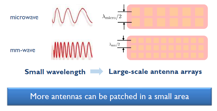 The MM wave signal has a much shorter wavelength than the microwave signal, which is in the order of millimeters. Therefore, it is considered essential for mm wave communication, since short wavelengths at mm wave frequencies are suitable to pack a lot of half-wavelength spaced antenna elements into a compact space,